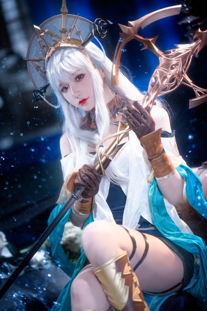 这是仙九Airi扮演《Fate/Grand Order》中的贞德的cos作品,乌黑的婚纱和闪亮的银发交相辉映,形成了一幅美丽的对比。仙九Airi_通过精心的打扮展现了贞德的优雅身姿,那气势磅礴和气度简直让人着迷!