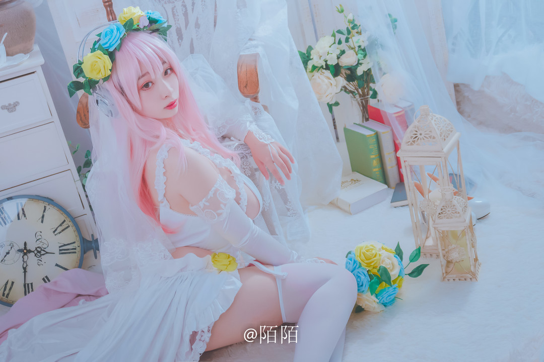 她戴着一顶五颜六色的花冠,头发染成了可爱的粉色,简直就是现实版的索尼子呢!在这一组照片中,韶陌陌穿着一套白色的睡衣,搭配着一条白色裙子,而底下还有一层红色的内衬。哇哦,这个造型真是又甜又可爱,韶陌陌真的是个小天使啊!