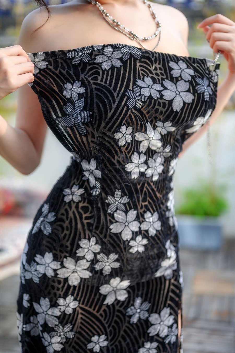 现在的人们都追求着时尚、高端、先进,中西文化交融引领着目前的服装盛宴潮流。当中西结合碰撞,总会擦出不一样的火花。今天给大家带来的就是这样的视觉盛宴,来自秋可柯基的秋影套图。让我们跟随一起步入秋天,在中西文化中找到秋的影子吧!高开叉的晚礼服裙,秋和柯基穿着的这一套服装其实也是很有讲究的。看花面设计很偏向于东方人的审美,古典且浪漫,而高开叉和本身礼服的样式却更偏向于西方的晚礼服,高贵立体且很能打动人心。不管是这个好像被秋风给微微灌醉的迷人表情还是略微慵懒的姿势,她这一套搭配让我想到了一句:可远观不可亵玩焉!