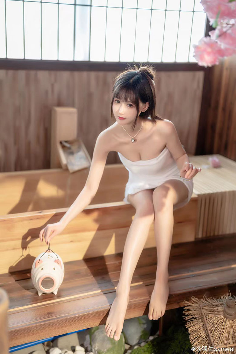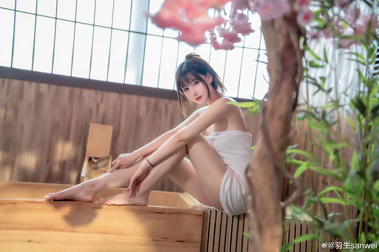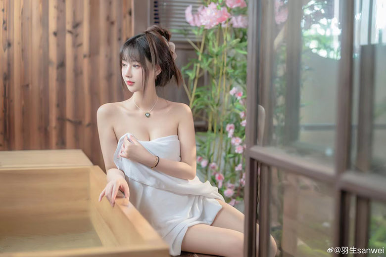 本期haooyuan给大家分享的写真套图来自于前几天介绍过的一个coser小姐姐—羽生sanwei。她是一个有着41.5万粉丝的cos博主,感兴趣的朋友可以去围脖关注一下这位漂亮的妹子,在微博上羽生三未个人介绍也是完全没有的,是哪里人,身高体重 ,出生年月我们都是不得而知的,当然这些都不重要,我们只要知道这是一个很受粉丝喜欢的coser就可以了。网上能查到的资料就是这些,当然也不知道是否真实,反正对于年龄这块小编是保持怀疑的,不过这些对于我们来说都不是那么的重要,我们的重点只有一个——她是一个漂亮的妹子,一个能经常发作品的漂亮妹子,有这个理由就完全足够了。今天分享的这套泡温泉写真真的是美得让人心动,让小编忍不住要和大家分享~