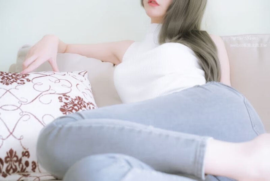眼酱大魔王的写真超具诱惑,因为有特别多的局部写真以及别人没有尝试过的写真效果。这张图片中,她那双美腿,细长修长,毫无赘肉可言,就连穿上紧身的浅色笔管牛仔裤也难以勒出一丝肉感。虽然缺少了可爱的肉腿感觉,但却展现出一种优雅与青春的韵味。瘦腿的魅力在她身上得以完美展现,绝对让腿控们欲罢不能!