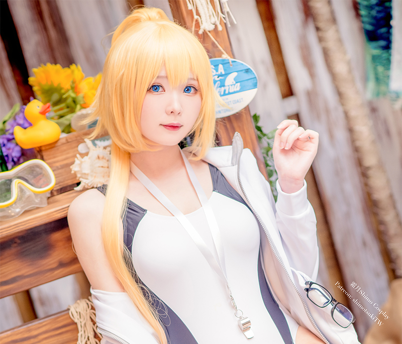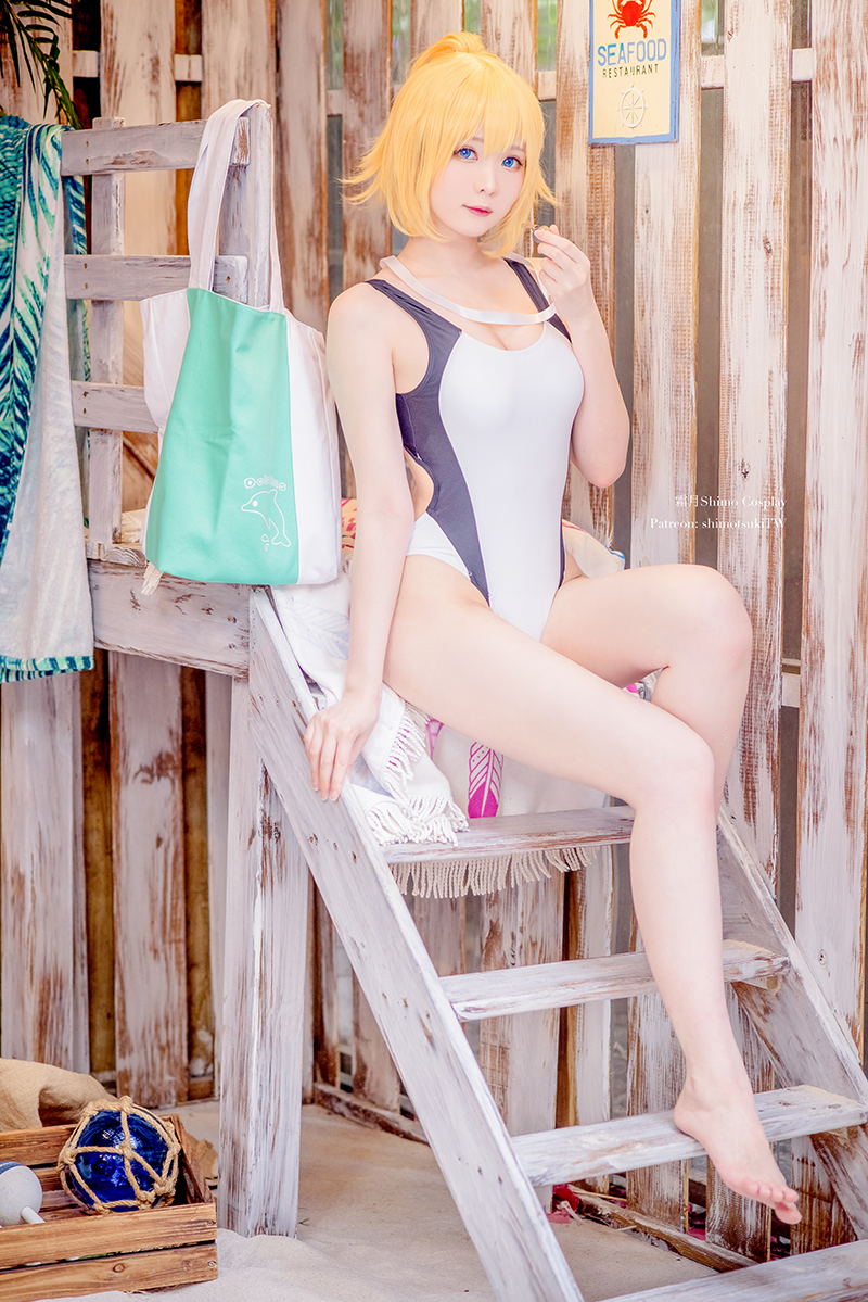 泳装贞德(Jeanne d’Arc)是手机游戏《Fate/Grand Order》中的一个特别版本角色,属于夏季活动期间限定推出的“泳装英灵”。在这些活动中,原本严肃、英勇的角色们穿上了夏日泳装,呈现出更加轻松和休闲的一面。泳装贞德是其中非常受欢迎的角色之一,下面我们一起欣赏一下霜月shimo小姐姐cos的泳装贞德吧!