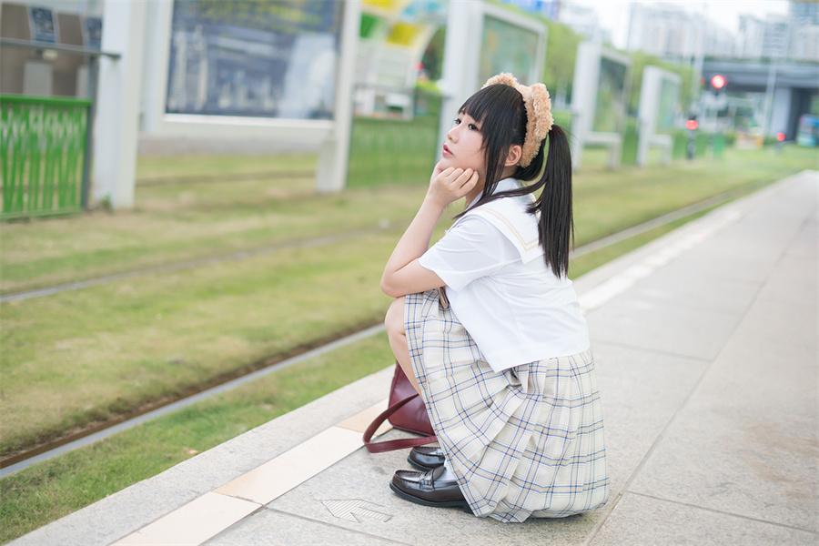 接着,让我们进入一个温馨时刻:铭铭kizami扎着可爱的马尾辫,蹲在地上,瞬间将我们带回了学生时代。她的童真和无忧无虑勾起了对青春回忆的无限向往,仿佛时间倒流,带领我们重温那些美好的校园时光。